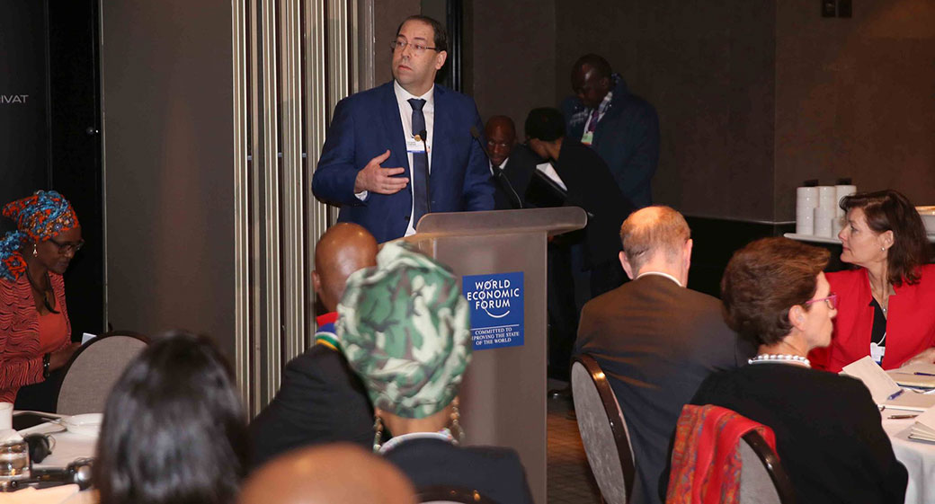 وفي تصريح لوسائل الاعلام الحاضرة عقب هذه الجلسة أكد يوسف الشاهد أن الوفد التونسي المشارك في هذا المنتدى قدّم فكرة ضافية عن التجربة التونسية الرائدة ووضّح أن ارساء الديمقراطية في تونس كان له كلفة على الاقتصاد التونسي مبرزا أن "هناك مسارا كاملا لارساء الديمقراطية وقد نجحنا فيه ونحن متشبثون به". ودعا رئيس الحكومة أغلب قادة الدول في العالم والفاعلين الاقتصاديين إلى ضرورة الاستثمار في تونس لانها تملك قدرة تنافسية كبيرة وفيها آفاق واعدة ويد عاملة متكونة.