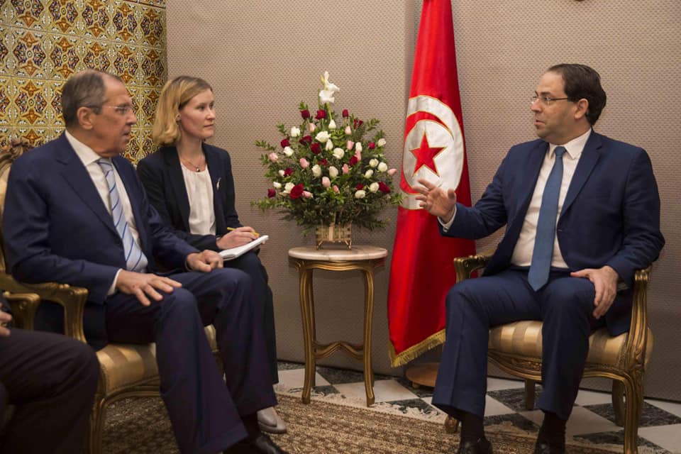 باب نات - مثل اللقاء الذي جمع اليوم السبت رئيس الحكومة يوسف الشاهد، بدار الضيافة بقرطاج، بوزير الخارجية الروسي سرغاي لافروف، فرصة لبحث سبل تعزيز علاقات التعاون الثنائي، خاصة في مجالات السياحة والتجارة والاستثمار والثقافة والنقل والتعاون المالي، بالإضافة إلى النظر في الاستحقاقات الثنائية القادمة، وفق بلاغ لرئاسة الحكومة.
