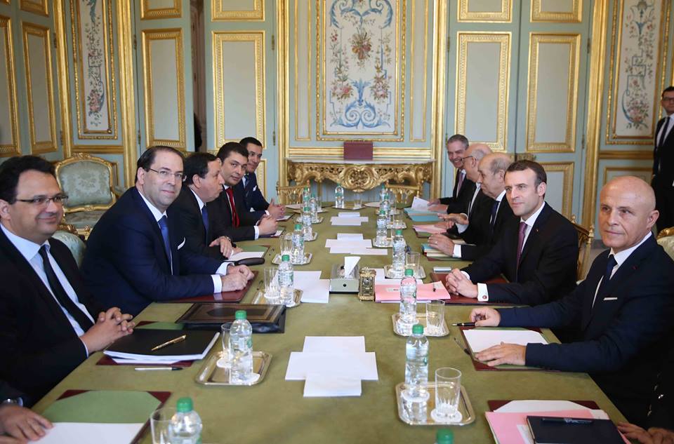 باب نات - استقبل اليوم الرئيس الفرنسي ايمانوال ماكرون بقصر الايليزي رئيس الحكومة يوسف الشاهد.