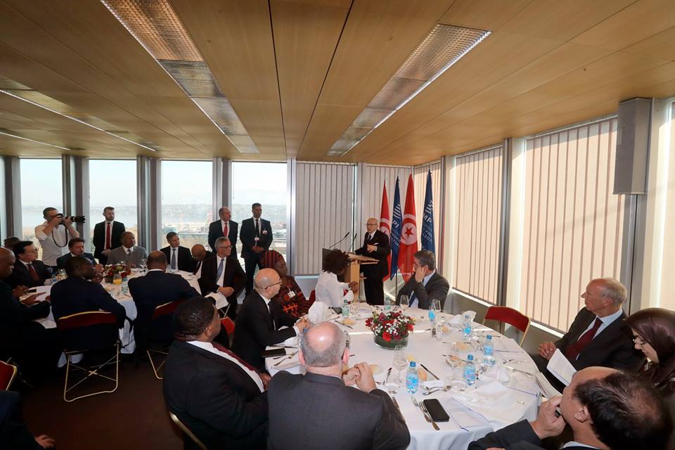 وقد حضر غداء العمل المدير العام لمنظمة التجارة العالمية، ورؤساء المنظمات الأمميّة المتواجدة بجينيف، ورؤساء الوفود المشاركة في الدورة الأربعين لمجلس حقوق الانسان.