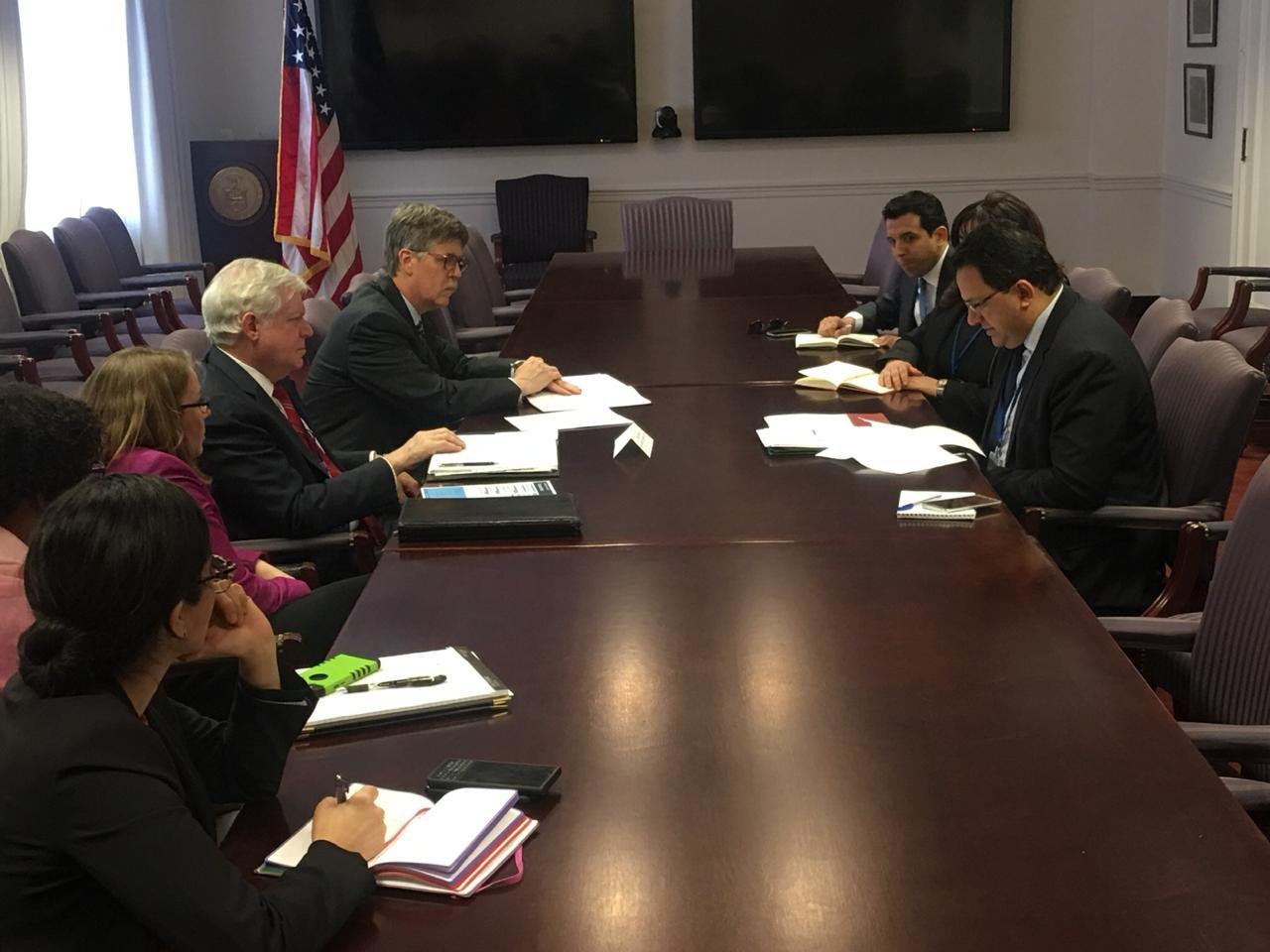 باب نات - في إطار مشاركته في اجتماعات الربيع للبنك العالمي وصندوق النقد الدولي بواشنطن حاليا، التقى وزير التنمية والاستثمار والتعاون الدولي زياد العذاري اليوم، بChris MILLIGAN ، نائب رئيس الوكالة الأمريكية للتنمية USAID.