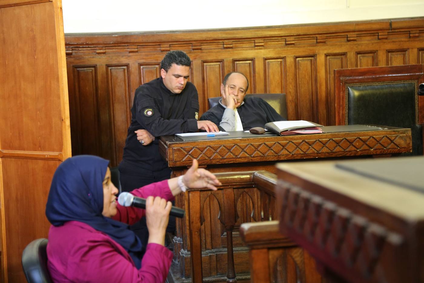 وبالمناداة على الشاكايات لم تحضر سلمي فرحات في حين حضرت البقية كما لم يحضر المنسوب لهم الانتهاك وتبين انه لم يصلهم الاستدعاء ...