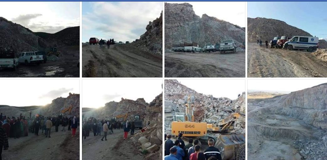 يذكر ان عاملين اثنين بمقطع لاستخراج الحجارة بمنطقة عين مذاكر من معتمدية النفيضة تعرضا يوم امس الجمعة الى حادث انهيار جزء من طبقات المقطع وعلقا تحت الأنقاض، وقد انطلقت الحماية المدنية في عمليات البحث والانقاذ منذ الساعات الاولى من وقوع الحادث، وسخرت للغرض المعدات والامكانيات البشرية المتوفرة بالمعتمديات المجاورة بهدف استحثاث نسق البحث عن المفقودين.