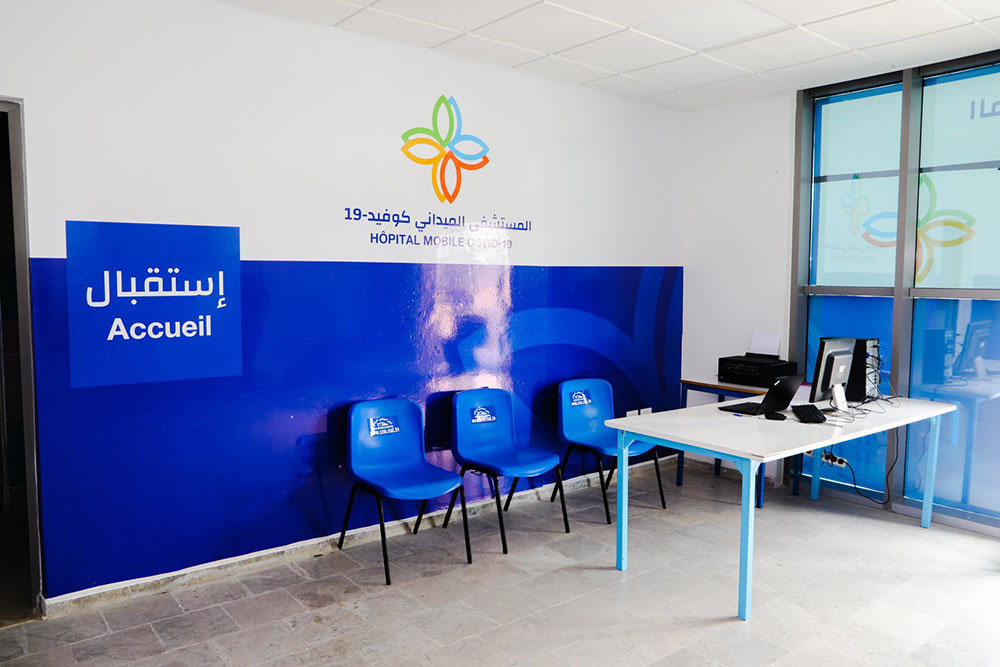 باب نات - في إطار معاضدة جهود الدولة في التوقي من وباء كورونا وبالشراكة مع وزارة الصحة تم تحويل قاعة رفع الاثقال بالحي الوطني الرياضي إلى مستشفى طارئ يحتوي هذا المستشفى على أسرة مخصصة بأجهزة تنفس وكذلك أسرة للانعاش