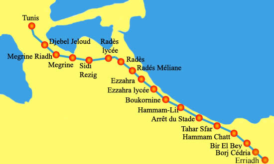 Côté infrastructure et superstructure, les travaux se poursuivent pour la pose de caténaires, la construction d’une sous station électrique, la surélévation des quais, le réaménagement partiel des voies dans les gares ainsi que l’adaptation des installations de signalisation et de télécommunication à l’électrification et le réaménagement du dépôt atelier de Borj- Cédria. Par ailleurs,et afin d’assurer une sécurité intégrale des utilisateurs du train , des riverains et des usagers de la route, divers autres actions ont déjà démarré et se poursuivent avec un rythme soutenu. Ces actions concernent la réalisation d’un site propre intégral par la clôture des emprises, la réalisation d’ouvrages supérieurs ou inférieurs pour déniveler le trafic routier et d’ouvrages pour piétons pour éviter la traversée à niveau des voies dans les gares et en pleine ligne. En outre, des travaux sont en cours de réalisation pour le réaménagement de tous les bâtiments dans les gares et arrêts de cette ligne afin de leur donner un nouveau esthétique digne d’une ligne moderne avec des abris sur quais et de nouveaux guichets.