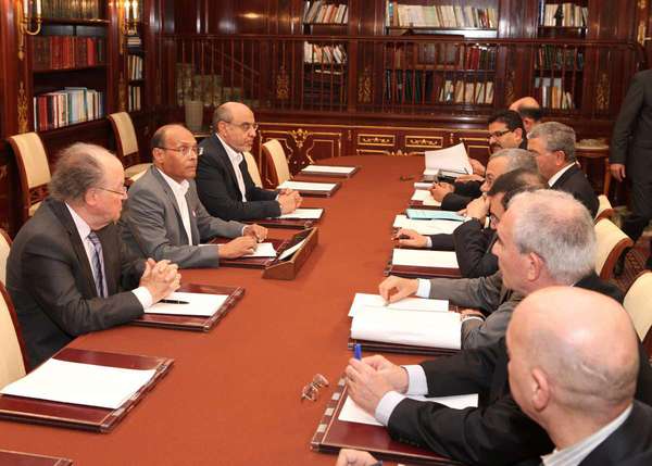 باب نات - عقدت اليوم السبت، 15 سبتمبر 2012 جلسة استثنائية بقصر قرطاج تحت إشراف السيد رئيس الجمهورية وبحضور رئيس المجلس الوطني التأسيسي ورئيس الحكومة ووزراء الداخلية والدفاع والخارجية والعدل لتناول التطورات الأمنية الأخيرة بالبلاد وسبل التعامل معها وقد أكدوا ما يلي: