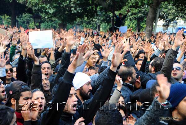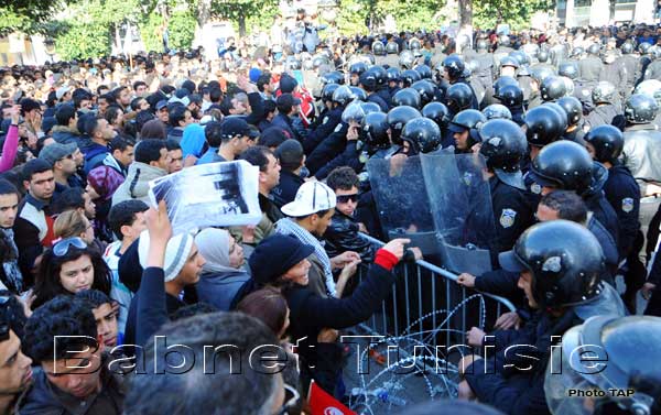 Le cortège funèbre de Belaid a parcouru plusieurs artères du centre ville avant de se diriger vers l'hôpital, provoquant des accrochages entre les forces de l'ordre et des manifestants au niveau des rues de Rome, Jean Jaurès et Place du Passage.