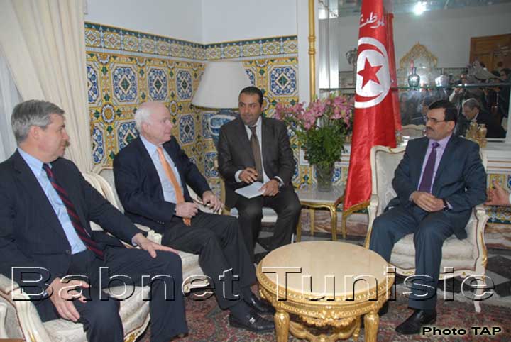 S'exprimant devant les médias à sa sortie d'un entretien, mercredi soir, avec le chef du gouvernement, à Dar Dhiafa, à Carthage, McCain a déclaré que l'entrevue avait porté sur le soutien à apporter à l'économie tunisienne et au développement, ainsi que sur l'avancement du processus démocratique en Tunisie.