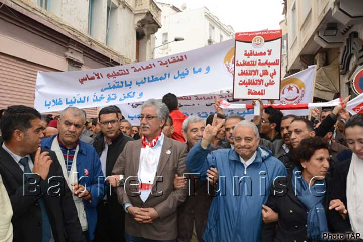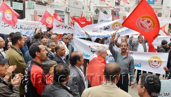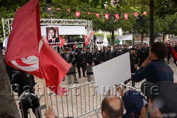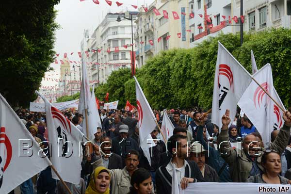 Les partisans de la Confédération générale tunisienne du travail (CGTT) se sont rassemblés devant le théâtre municipal scandant des slogans appelant à l'inscription du droit syndical dans la Constitution, au moment où les représentants de l'Union générale tunisienne du travail (UGTT) se sont dispersés sur toute l'avenue, avant de se diriger, par centaines, vers la place Mohamed Ali.