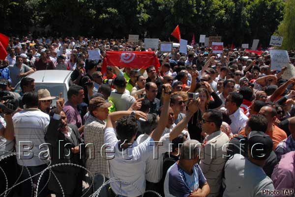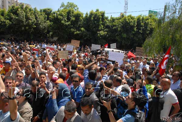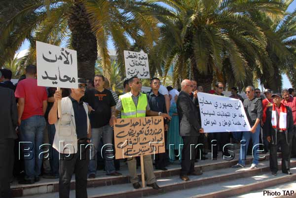 باب نات - نظّم الاتحاد الوطنى لنقابات قوات الأمن اليوم الجمعة 10 ماي وقفة أمام مقر المجلس الوطني التأسيسي بباردو للتنديد بما وصفوه المدّ الارهابي .