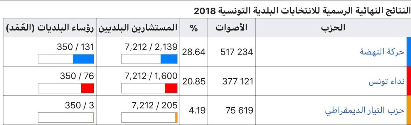 في خصوص نسبة 29% التي تم المقارنة بها، هي طبعا ليست النسبة المسجلة للنهضة في الدائرة البلدية لسوق الجديد، وانما هي النسبة العامة التي حصلت عليها النهضة وطنيا 29,66% (2139 مقعد من جملة 7212 ) ، وهو اتجاه تم تسجيله وترسخ وطنيا، وهو الاجدى باعتماده للمقارنة.