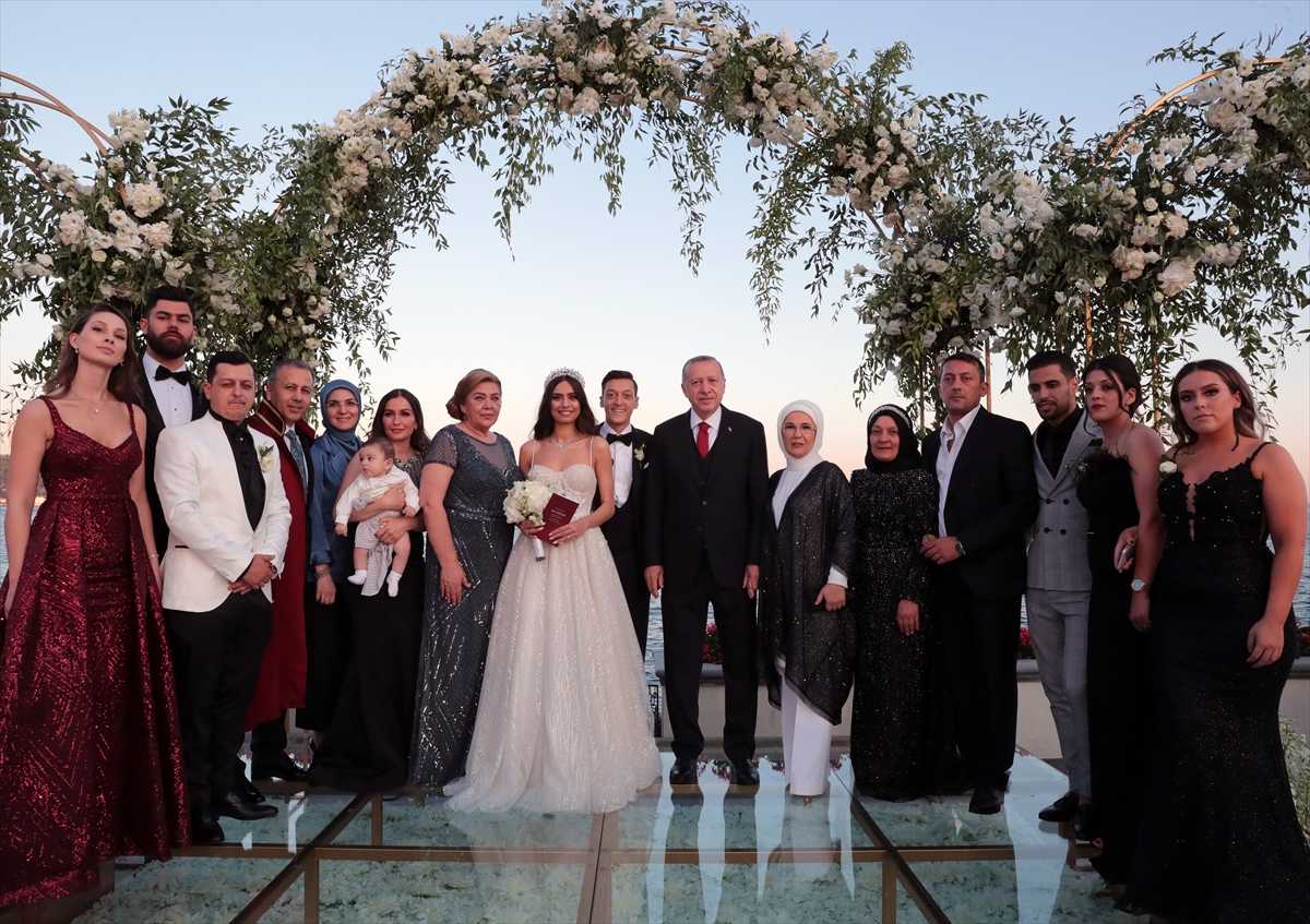الأناضول - إسطنبول / قاآن بوزدوغان - حضر الرئيس التركي رجب طيب أردوغان وعقيلته أمينة، الجمعة، حفل زفاف لاعب كرة القدم الألماني من أصول تركية مسعود أوزيل على الممثلة السويدية من أصول تركية أمينة جولشه.