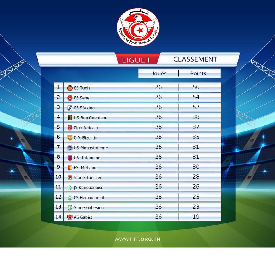 ومن جهته توفق النجم الساحلي في تامين المركز الثاني في جدول الترتيب النهائي للبطولة بعد موسم استثنائي ليضمن لنفسه مكانا ضمن مسابقة كاس رابطة ابطال افريقيا خلال الموسم القادم بفضل فوزه اليوم على النادي الافريقي بثنائية نظيفة ليتخلص بصفة حاسمة من ملاحقة النادي الصفاقسي الذي رغم فوزه على اتحاد بن قردان بذات النتيجة فانه اكتفى في نهاية المطاف بالمركز الثالث.