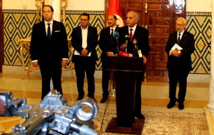من ناحية أخرى اشترط يوسف الشاهد الدخول الى الحكومة مقابل اقصاء حزب قلب تونس ،،، في هذه الاثناء لعب الوسطاء المستقلون الذين يؤيدون حكومة الصف الثوري و القطع مع منظومة الفساد و الاستبداد مثل حبيب بوعجيلة و جوهر بن مبارك و غيرهم دورا في رعاية المفاوضات و تقريب وجهات النظر و تقديم التنازلات لمصلحة الوطن مما ساعد على تحقيق تقدم هام اثر اللقاء الذي جمع مساء الخميس بين راشد الغنوشي و محمد عبو و يوسف الشاهد .