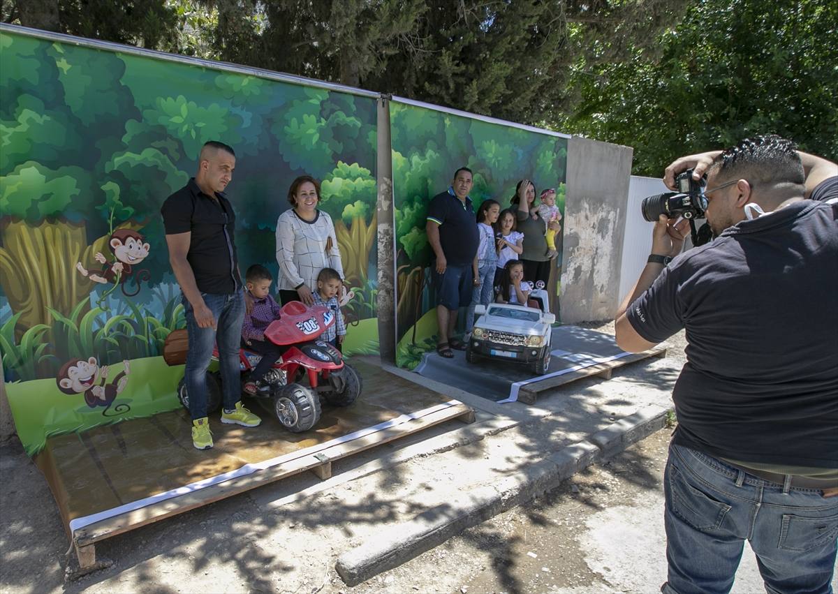 ووقف رمضان إلى جانب زوجته يلتقطان بعض الصور التذكارية لأبنائهم وهم يلعبون فوق الأحصنة التي خصصتها لهم لمياء.