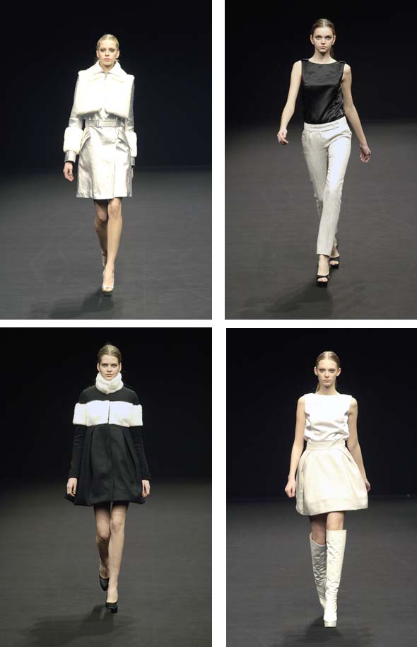Avec tout l’amour qu’une fille peut porter à sa mère et tout l’étendue d’un talent, Ece EGE tient encore une fois ses promesses et nous offre pour la saison hiver 2007, des silhouettes années 50 et années 70. Optant pour le résolument sobre chic, elle portera son choix de couleurs sur le gris le noir et le blanc. La ligne est épurée avec un soupçon de sophistiqué. Les robes sont courtes et laissent entrevoir les cuisses, les formes trapèze sont au rendez vous, se portant haut perché sur des bottes en cuir et vernis, ultra classe. Les sixties en hommage à l’élégance de sa mère sont revisitées, et les escarpins en semelle compensée sont très présentes. Le soir, les robes s’inspirent des icônes des années 50, les tailles sont hautes et serrées dans le dos par de larges nœuds en satin. Les robes se déclinent en des matières fluides ( crêpe de laine, lurex argenté, et soie de coton). Beaucoup de trench pour les rigueurs de la saison se portant avec des fourrures, alors que les jupes prennent du volume et se marient avec des petites vestes prés du corps. La collection bien que contrastant avec la saison passée où la styliste avait mis plus de chaleur et de couleurs, reste divinement élégante. Le rétro est tout simplement revisité par des coupes impeccables.