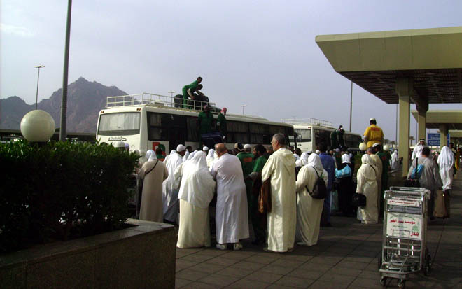 Prise en charge des pélerins à l'aéroport de medine (photo babnet 2007)