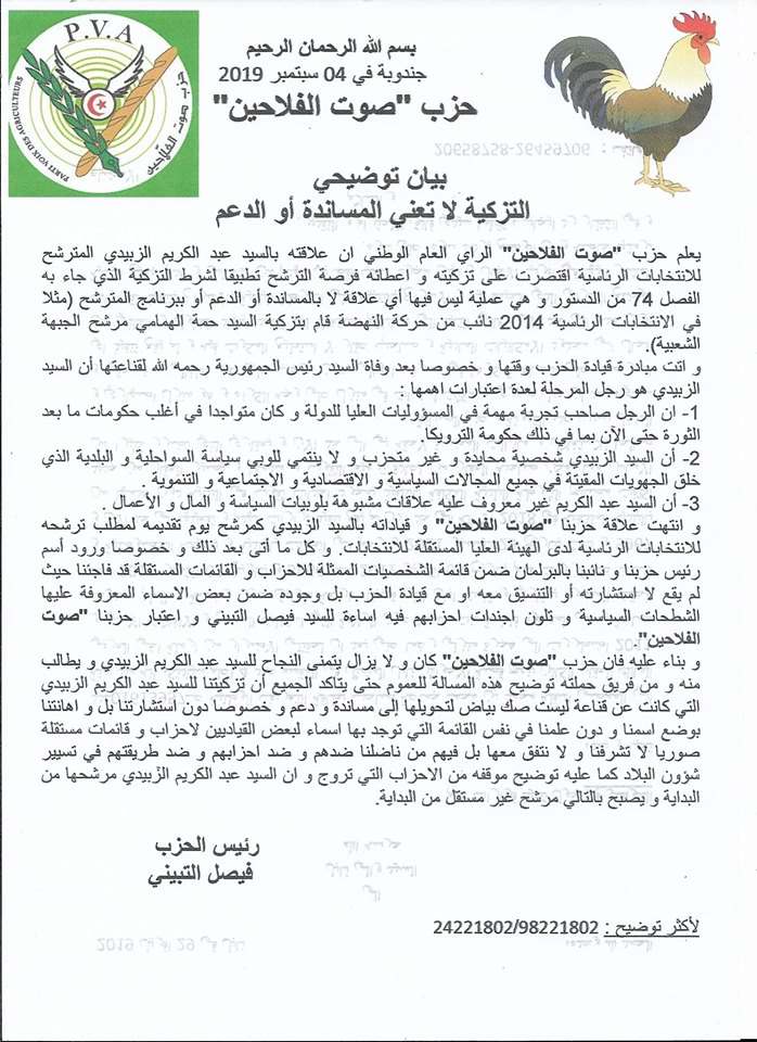 وأضاف بان كل ما قام به هو تزكيته فقط وهو منشغل حاليا بحملته للانتخابات التشريعية فقط.
