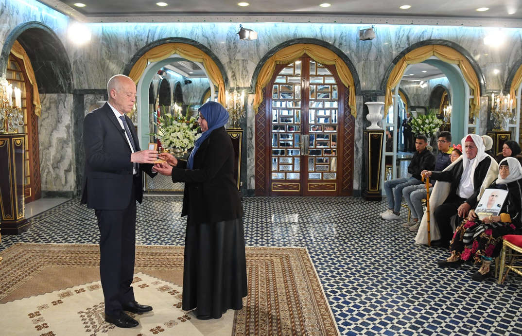 باب نات - أشرف رئيس الجمهورية قيس سعيد اليوم الثلاثاء 10 مارس 2020 على موكب بقصر قرطاج تولّى خلاله تكريم عائلة الشهيد توفيق الميساوي وجرحى العملية الإرهابية الجبانة التي جدّت يوم 06 مارس 2020 بمنطقة البحيرة 2 بمنحهم وسام الوفاء والتضحية.