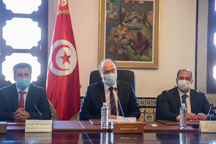 باب نات - أشرف رئيس الحكومة إلياس الفخفاخ صباح اليوم الجمعة 29 ماي 2020 على جلسة عمل مشتركة جمعت وفدا من أعضاء الحكومة ووفدا عن المكتب التنفيذي للاتحاد العام التونسي للشغل يتقدمه نورالدين الطبوبي الأمين العام للمنظمة الشغيلة.