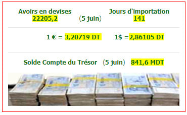 La BCT souligne que les cotations sur le marché de change, pour la journée du vendredi 05 juin 2020, se sont traitées aux alentours de 3.21 contre 3.19, une journée auparavant, pour l’euro et aux alentours de 2.85 contre 2.87 hier, pour le dollar USD.