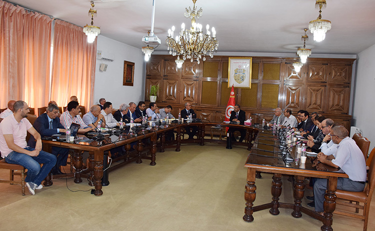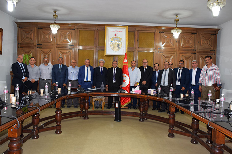 باب نات - مثلت دراسة مشاغل قطاع البناء والاشغال العامة محور جلسة عمل التأمت صباح اليوم الجمعة 12 جوان 2020 تحت إشراف المنصف سليطي وزير التجهيز والإسكان و التهيئة الترابية وبحضور جمال الكسيبي رئيس الجامعة الوطنية للمؤسسات البناء و الأشغال العمومية ووفد عن أهل القطاع بالإضافة إلى ثلة من إطارات الوزارة.