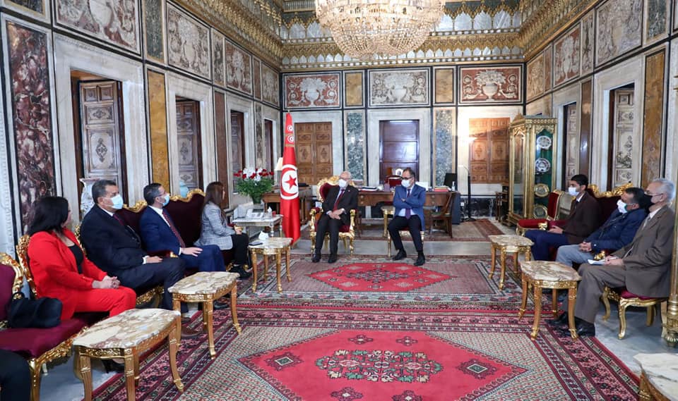 باب نات - استقبل راشد الغنوشي رئيس مجلس نواب الشعب صباح اليوم الثلاثاء 22 ديسمبر 2020 بقصر باردو مكتب الهيئة الادارية لنقابة القضاة التونسيين تتقدّمهم أميرة العمري رئيسة النقابة، وذلك بحضور مبروك كورشيد، مساعد الرئيس المكلف بالعلاقات مع السلطة القضائية والهيئات الدستورية.