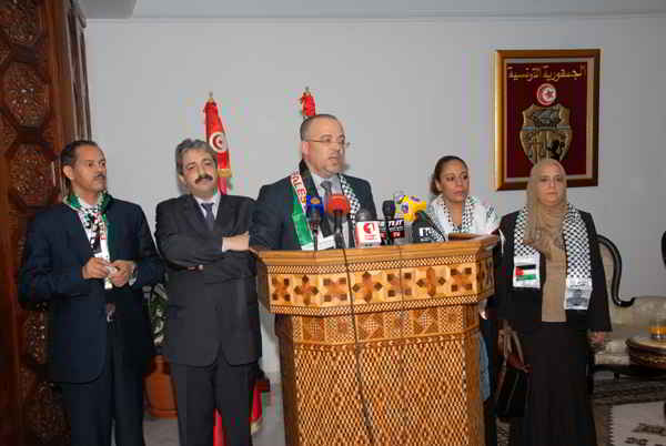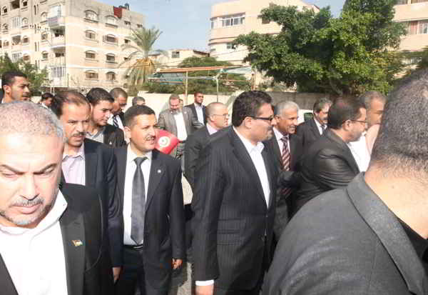 وفد رسمي تونسي يضم عددا من اعضاء الحكومة الموقتة ورئيس ديوان رئيس الجمهورية الموقت يؤدون زيارة الى قطاع غزة عبر معبر رفح البرى بمشاركة وزير الشوون الخارجية رفيق عبد السلام