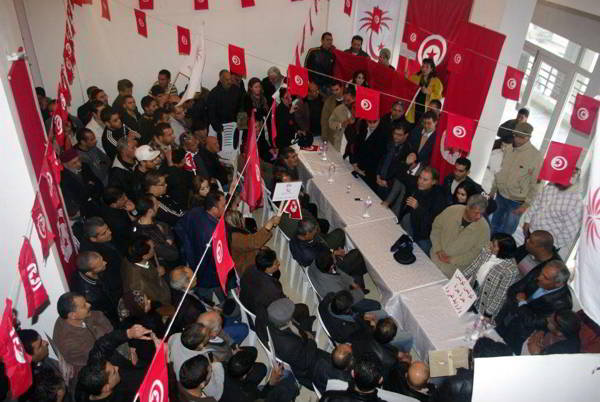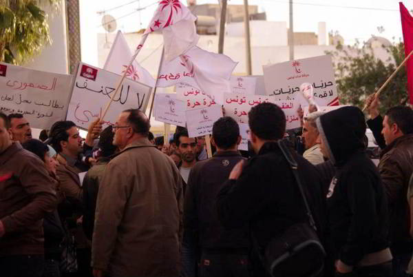 باب نات - نظمت حركـة نـداء تونـس بالمنستيـر وقفـة إحتجاجيّة بحضور أعضاء من المكتب التنفيذي للحركة بمشاركة أحـزاب المسـار والجمهـوري والاشتـراكي ووممثلين عن الاتحاد العام التونسي للشغل تنديـدا بالعنـف السياسـي وسلسلـة الاعتـداءات المتواصلـة التي تتعرض اليها مقراتها...