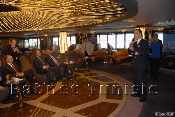 باب نات - رست الباخرة الجديدة ام اس سي برسيوزا صباح الأربعاء للمرة الأولى بميناء تونس حلق الوادي وعلى متنها طاقم يتكون من 1388 فردا و4345 سائحا وغادر اغلبهم متن السفينة لزيارة العاصمة والقرية السياحية قرب الميناء وتعتبر هذه السفينة من جيل السفن السياحية الضخمة في العالم أو ما يسمى الفنادق العائمة اذ يصل طولها الى 333 مترا وعرضها 38 مترا وقد تم الانتهاء من بنائها خلال السنة حالية لتدخل حيز النشاط في 23 مارس 2013 واختارت ام اس سي برسيوزا تونس لتكون ضمن أولى رحلاتها لما تتميز به من سلامة وامن الملاحة وحسن استقبال وجودة خدمات وتضفي سياحة الرحلات البحرية حركية على عديد الأنشطة المتصلة بالقطاع وهي تدر عائدات تتأتى من بيع منتجات الصناعات التقليدية بالقرى السياحية وكذلك المساحات التجارية بالمدن العتيقة علاوة عن مساهمتها في خلق مواطن الشغل التنشيط والنقل وتخطط تونس حسب أرقام وزارة السياحة لاستقطاب نحو 251 رحلة بحرية سنة 2013 بما يمكنها من تجاوز عدد السياح الذين توافدوا على البلاد من هذه الرحلات سنة 2010 أكثر من 895 ألف سائح وقد استقبلت تونس من هذه الرحلات أكثر من 582 ألف سائح سنة 2012 مقابل أكثر من 313 ألف سنة 2011.