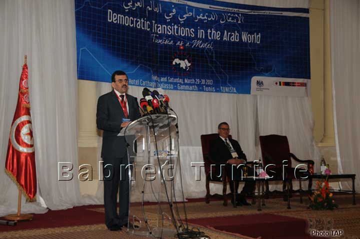 وقد أخذ كلمة الافتتاح الدكتور رضوان المصمودي منسق التظاهرة حيث رحب بالحاضرين قبل أن يفسح المجال لكلمة رئيس الحكومة السيد علي العريض و تميز بالحضور في هذه الندوة السفير الامريكي بتونس والسفير الالماني بتونس ورئيس حركة النهضة الشيخ راشد الغنوشي والامين العام لحزب نداء تونس الطيب البكوش بالاضافة لعدة وزراء من الحكومة المستقيلة ونواب من المجلس التأسيسي عن أحزاب مختلفة. وبالاضافة أيضا لأكاديميين وأساتذة جامعات من دول عربية وأوروبية وأمريكية وآسيوية