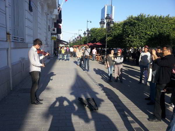 باب نات - ظهر الجمعة 5 أفريل 2013 في تونس وتحديدا بشارع الحبيب بورقيبة بالعاصمة عازف لما يعرف بموسيقى الشوارع و كان شابا في العشرينات من العمر اتخذ أحد أرصفة الشارع الرئيسي بالعاصمة ركحا له وعانق الكمان عزفا و إحساسا و أطرب المارة الذين وقف العشرات منهم للإستمتاع بعزفه .