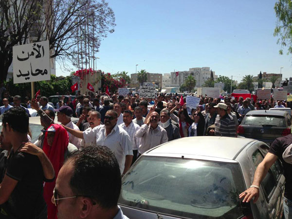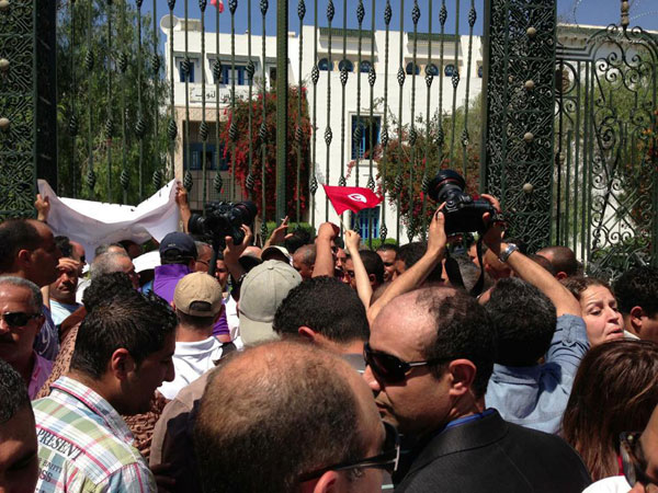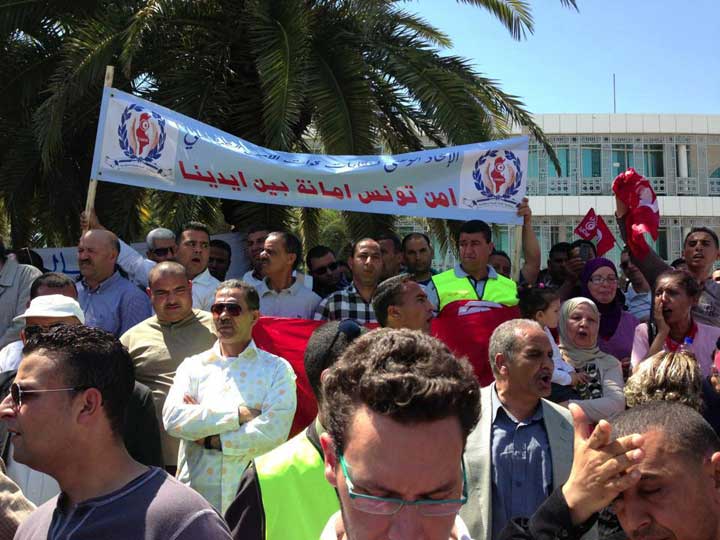 باب نات - نظّم الاتحاد الوطنى لنقابات قوات الأمن اليوم الجمعة 10 ماي وقفة أمام مقر المجلس الوطني التأسيسي بباردو للتنديد بما وصفوه المدّ الارهابي .